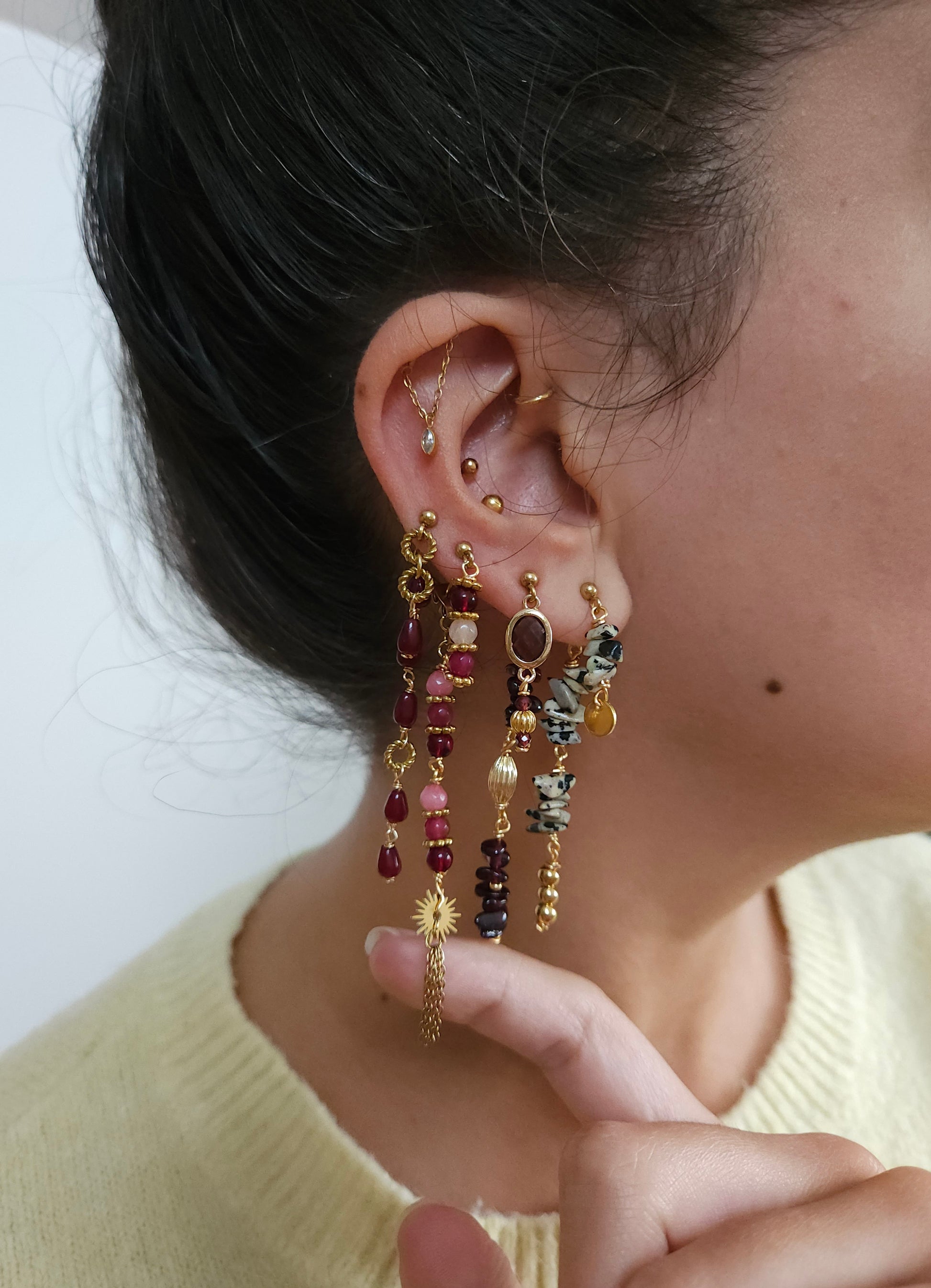Tous les anneaux des créoles/puces sont en acier inoxydable donc hypoallergénique, résistant à l'eau et résistant aux temps, certains éléments sont dorés a l'or fin.