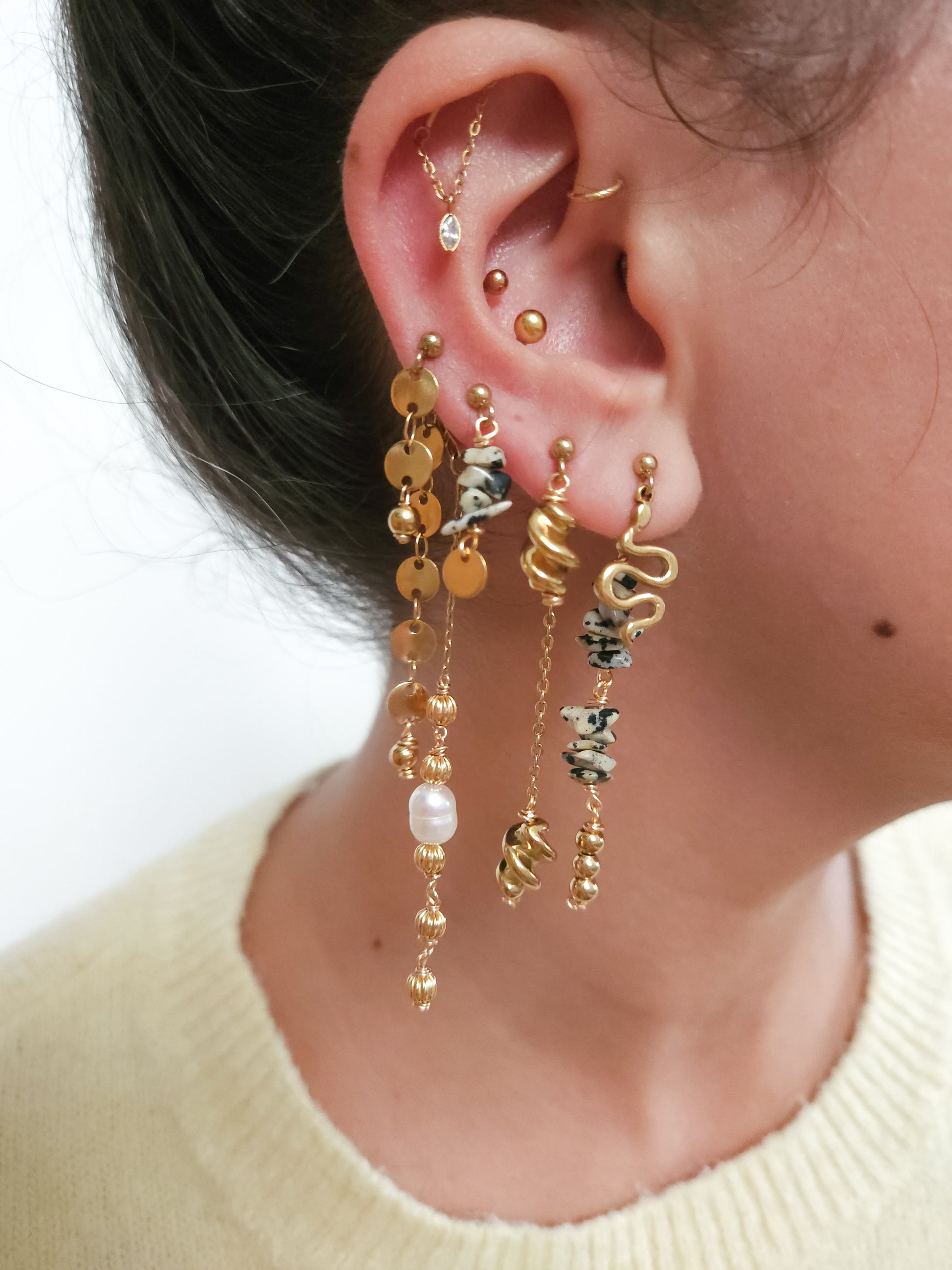 Tous les anneaux des créoles/puces sont en acier inoxydable donc hypoallergénique, résistant à l'eau et résistant aux temps, certains éléments sont dorés à l'or fin.
